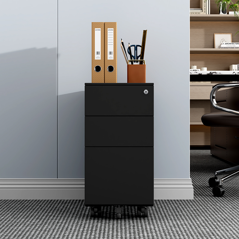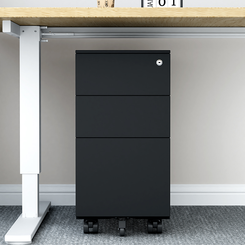 3-drawer locking file cabinet with smooth-rolling casters.perfect for creating a secure yet stylish office workspace.
