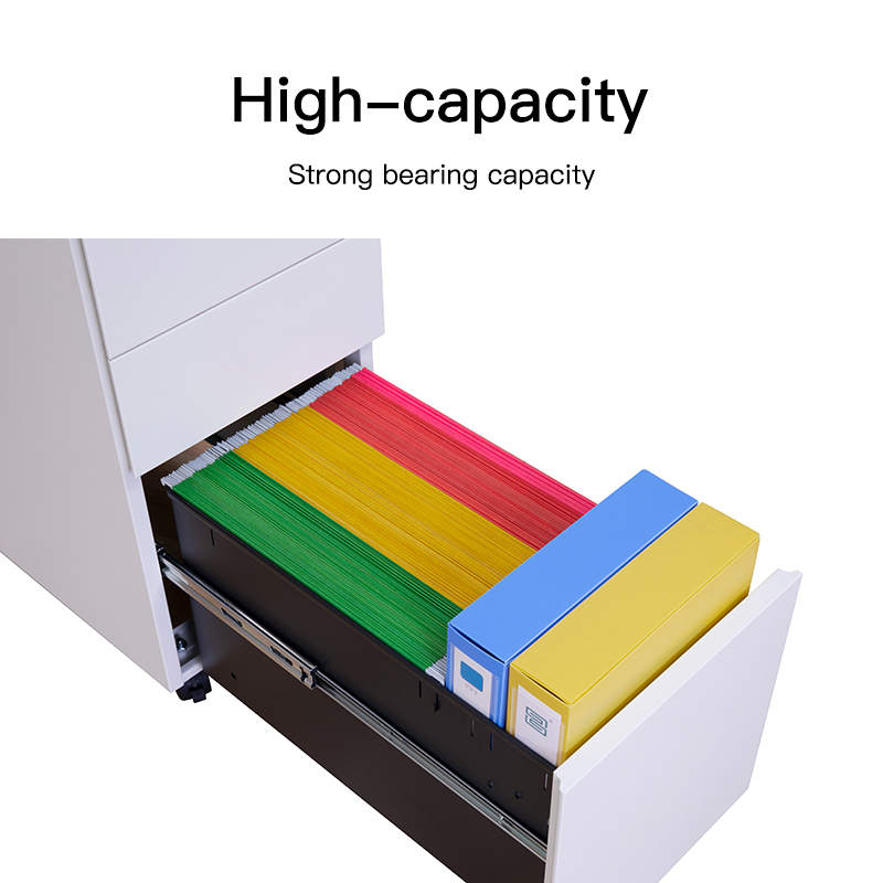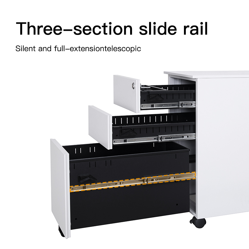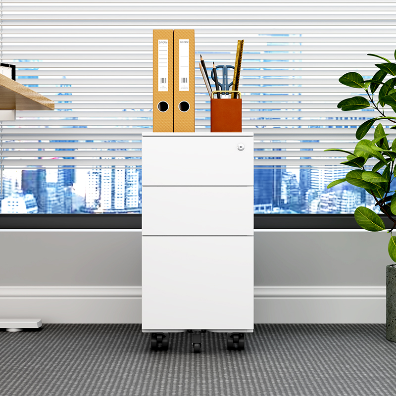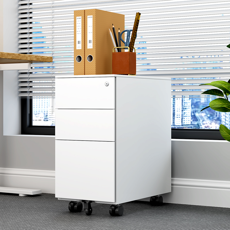 White 3-drawer mobile cabinet with black casters for easy movement. this minimalist storage solution blends functionality with style.